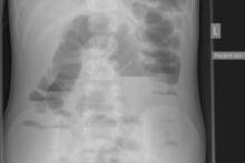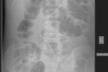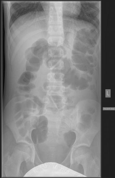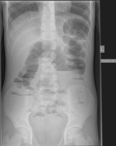 Przypadek 4: 11-letni chłopiec z napadowymi bólami brzucha od 3 tygodni, z wielokrotnymi wymiotami. Pacjent ani rodzice nie potrafili określić kiedy było ostatnie wypróżnienie. Podejrzenie niedrożności przewodu pokarmowego.
