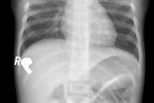 Przypadek 57: 2-letnia dziewczynka z podejrzeniem ciała obcego w przewodzie pokarmowym - moneta 5 zł.